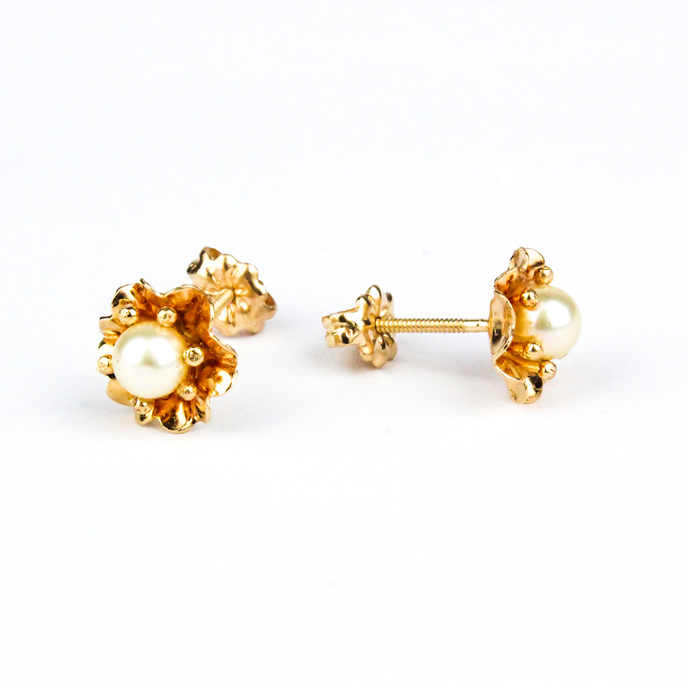 Presentamos nuestros encantadores aros modelo Pistilo Flor, diseñados especialmente para las más pequeñas. Fabricados íntegramente en oro amarillo de 18 kilates, estos aros lucen una delicada perla cultivada, ideal para el uso diario. Su tamaño discreto y seguro es perfecto para niñas, aportando un toque de elegancia y pureza.