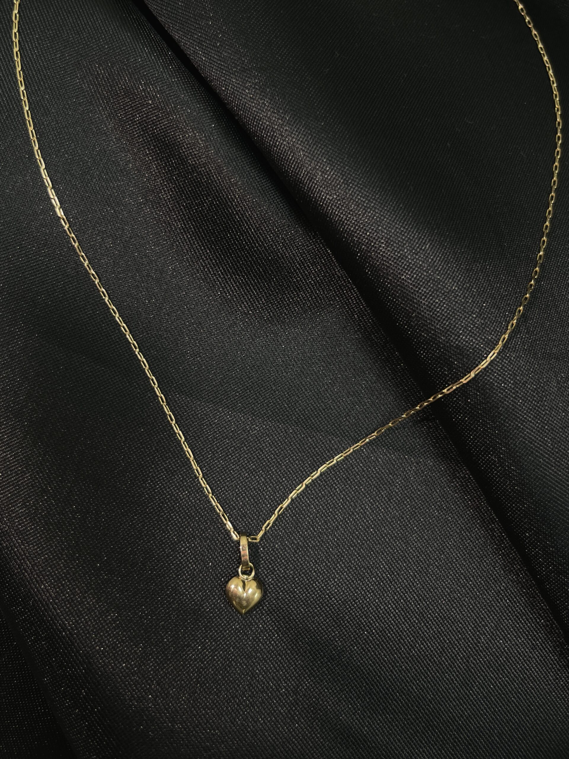 - Colgante de Corazón Atemporal: El punto focal es un corazón de oro pulido y brillante. Este diseño clásico y minimalista se centra en la belleza intrínseca del metal y el significado profundo del amor, la pasión y la conexión.