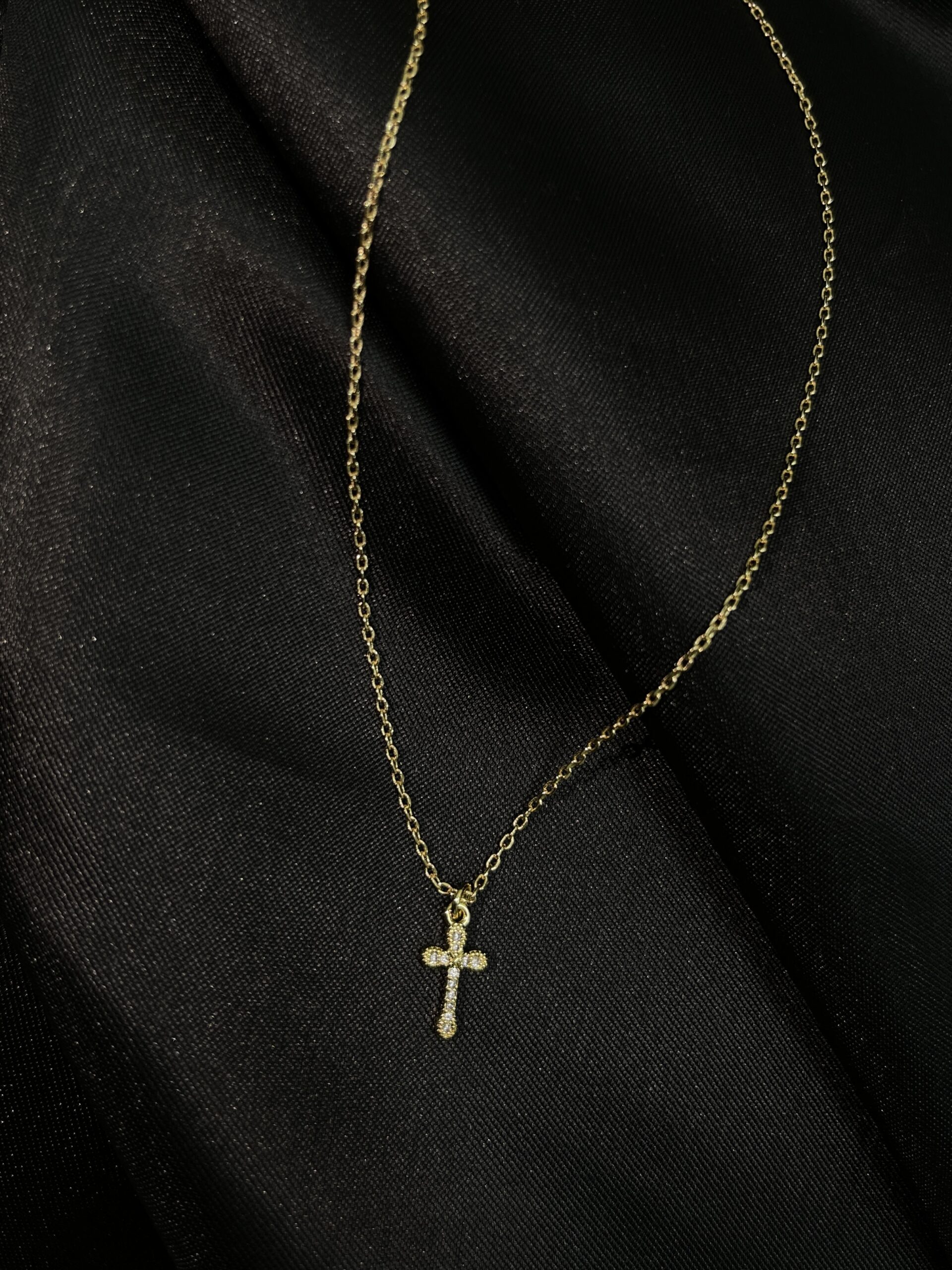 Esta joya es la encarnación de la elegancia discreta, combinando un diseño delicado con el simbolismo atemporal de la cruz. Ideal para quienes aprecian la sofisticación en los pequeños detalles.