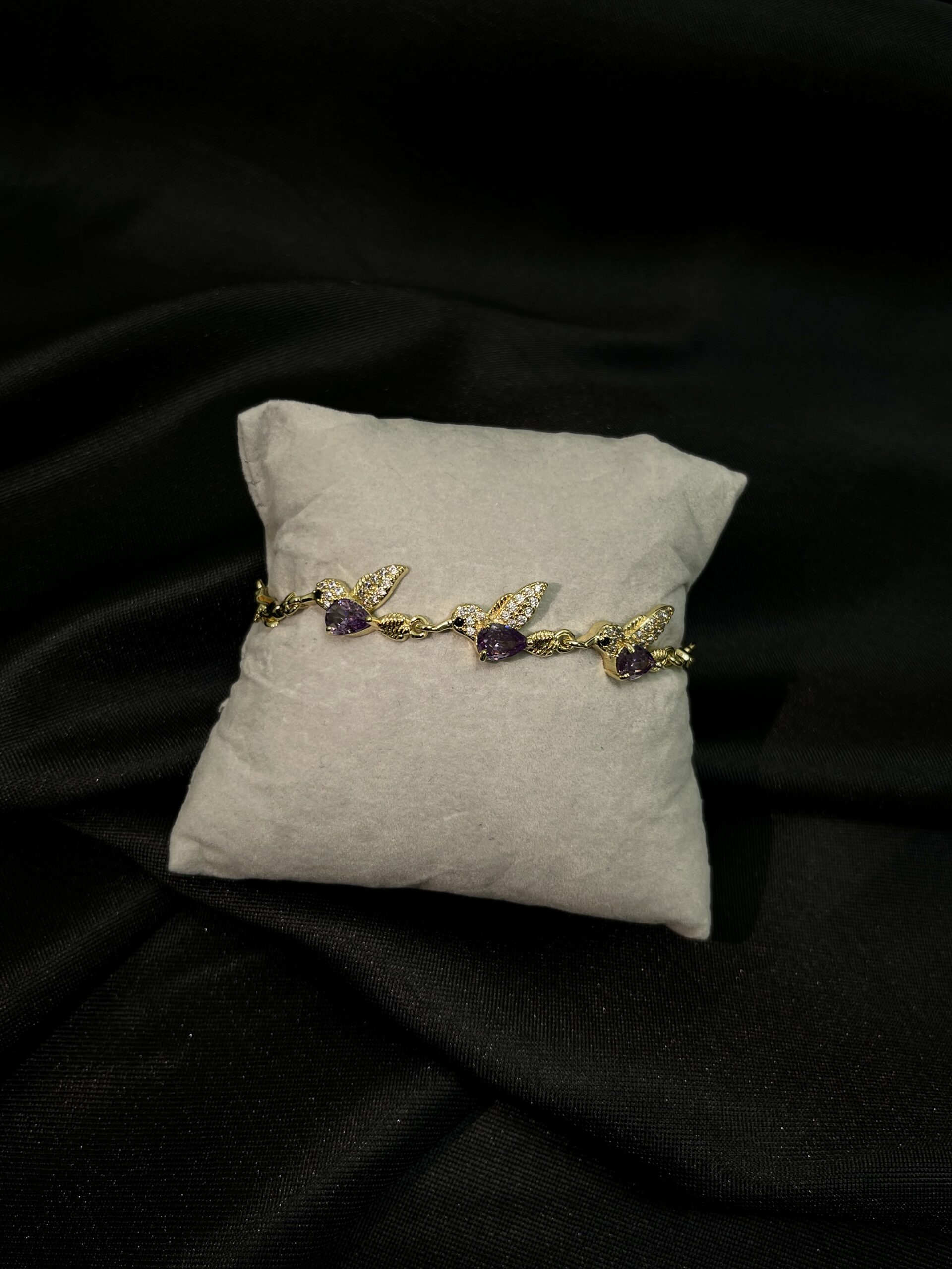 - Motivo de Tres Pajaritos: La joya presenta tres figuras detalladas en forma de pajaritos. Estas aves, símbolos de libertad y ligereza, están distribuidas a lo largo de la pulsera como puntos focales encantadores.